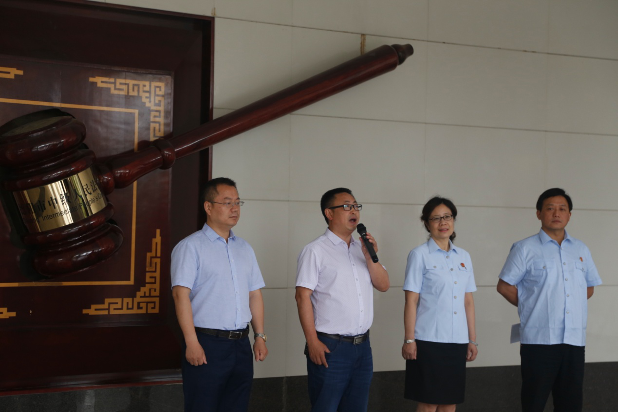 上午9時,市中院副院長施敏,市司法局黨委委員、機關黨委書記、市律師行業(yè)黨委書記廖德智,市律協(xié)副會長、仁競律所管委會主任李軍,市中院立案庭庭長陳華剛為工作室授牌,并向調(diào)解室負責人頒發(fā)了調(diào)解室印章,我所律師王鵬作為調(diào)解員代表,接受授牌。